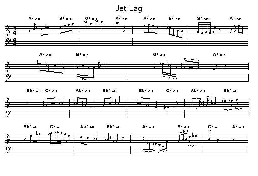 | This was my first attempt to write a melody for an ascending progression which uses 7(b9) chords followed by minor or major chords a half step higher.