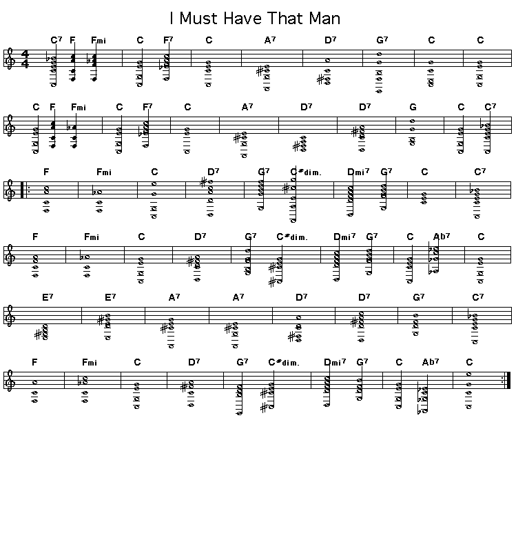 Chord progression for Fields and MgHugh's I Must Have That Man. Composed in 1928. Billie Holiday did a notable performance of this.
