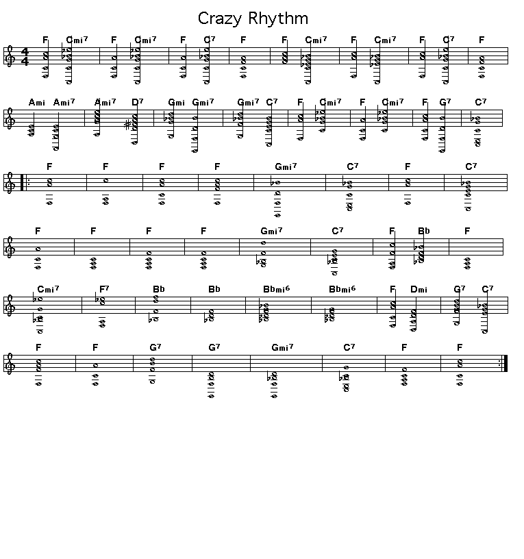 Chord changes for Meyer and Wolfe's Crazy Rhythm, composed in 1928.